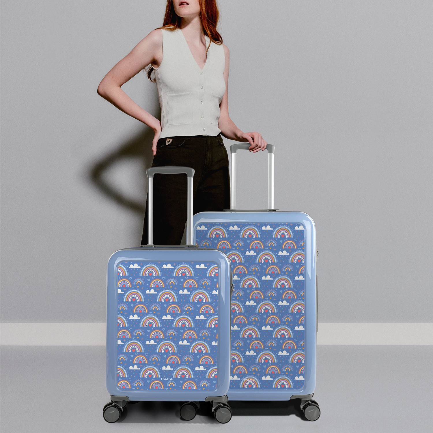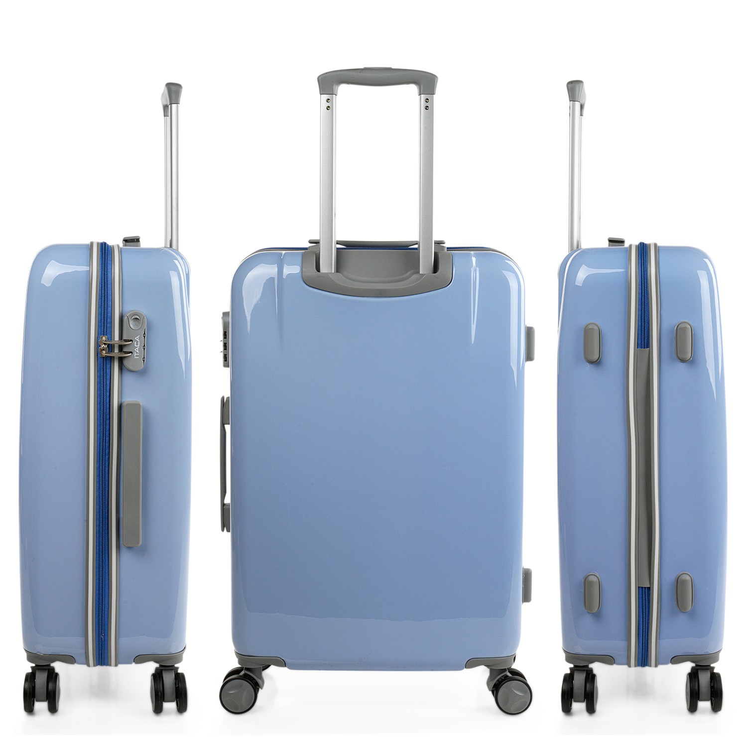 Set von Trolleys Koffer der Marke ITACA in den Größen 50/60/70 aus Polycarbonat, einem leichten und widerstandsfähigen Material.