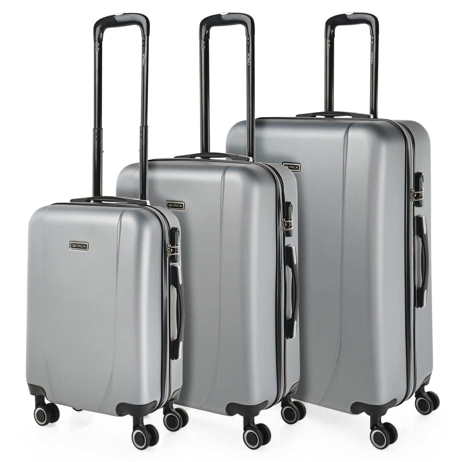 Drei Trolleys 50/60 / 70cm der Marke Ithaka mit exklusivem Design und hat mehrere zwei-Farben bunt. Mit vier Rädern Schwenk- und ausziehbare Griff. Mit Innenfutter.