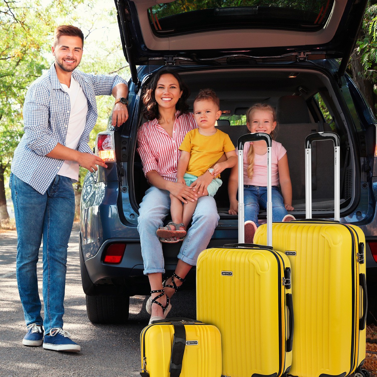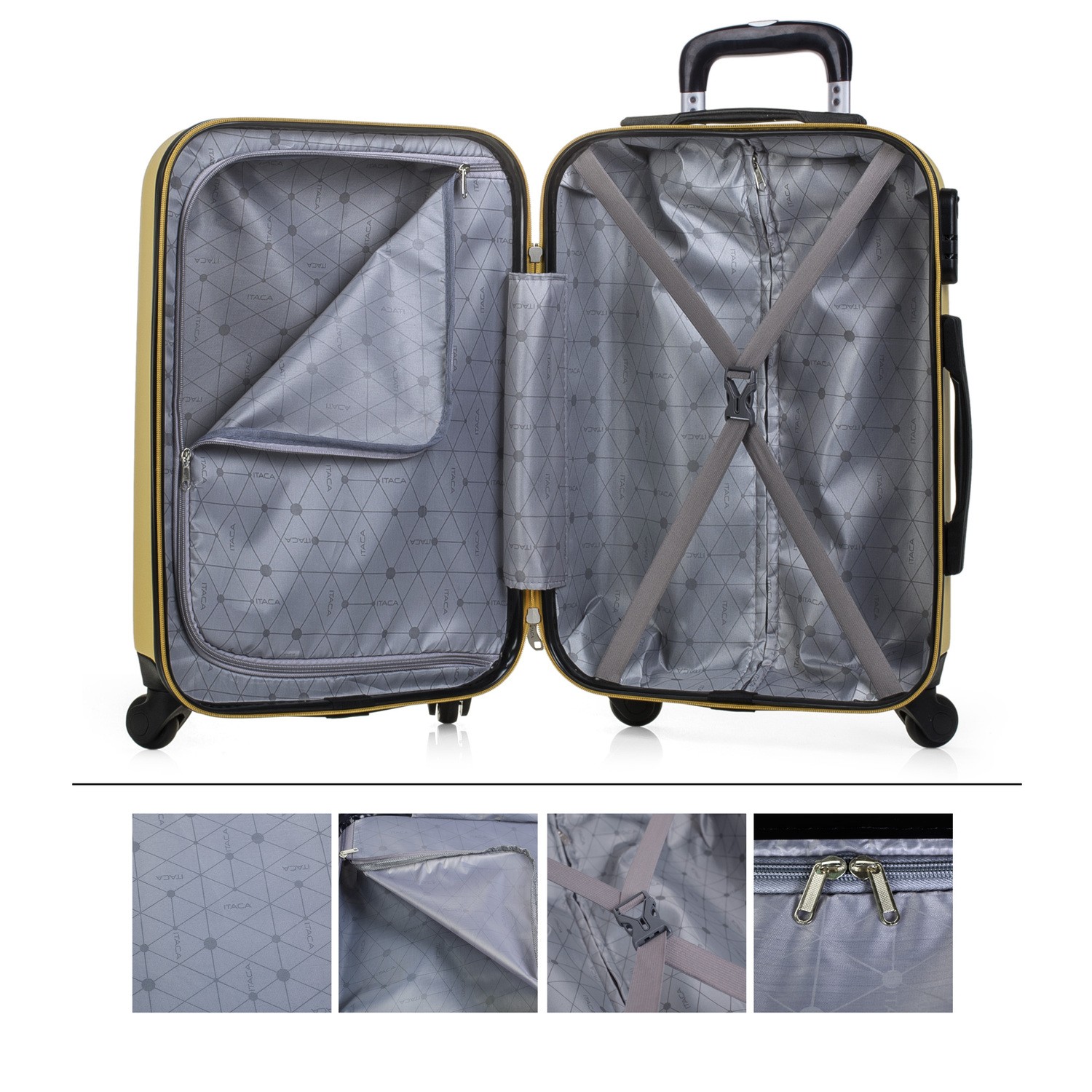 Set von 2 Reisekoffern und Beauty-Hülle von der ITACA-Firma. Alle ITACA Produkte sind ein Maßstab für Qualität, Sicherheit und Vertrauen. ITACA ein Unternehmen mit viel Erfahrung in der Entwicklung und Herstellung von Reiseprodukten. Ein Produkt ITACA immer Ihr treuer Begleiter sein. Dieses Set bietet Ihnen eine ideale Kombination für Ausflüge bis zu einer Woche. Die ITACA Taschen sind für maximalen Komfort auf der Reise konzipiert. Maße Cabin (Entspricht den Gepäckbestimmungen von EasyJet, Iberia, Ryanair, etc.) Gesamt: 55x38x20 cm Gehäuse: 48x37x20 cm Volumen: 35 L Gewicht: 2,80 kg Medium Gesamt: 66x41x27 + 5 cm. Ausziehbar 5 cm. Gehäuse: 59x39x27 + 5 cm Volumen: 70 L Gewicht: 3,50 kg Beauty-Fall 33x26x14 cm 0.80kg Hauptmerkmale Außen Material: ABS texturiert Anti-Kratzer. Verschluss: Integriertes 3-stelliges Kombinationsschloss. Zip: Doppelcursor mit Löchern für Vorhängeschloss. Sehr glattes Gleiten. Griffe: Obere und seitlich versenkbare Griffe. Maximaler Komfort in jeder Position. Griff: Ergonomischer Doppelrohr-Teleskopgriff mit Verriegelungsknopf. Räder: 4 Doppelräder omnidirektional rotierend 360 °. Mittelerweiterziehbar bis zu 25% seines Volumens. Steif, leicht und widerstandsfähig gegen Stöße und Kratzer. Innere Gemusterte Innenfutter. Trennfach mit Reißverschluss. Verstellbare elastische Stützbänder. Mehrere Fächer. Sehr vollständig.