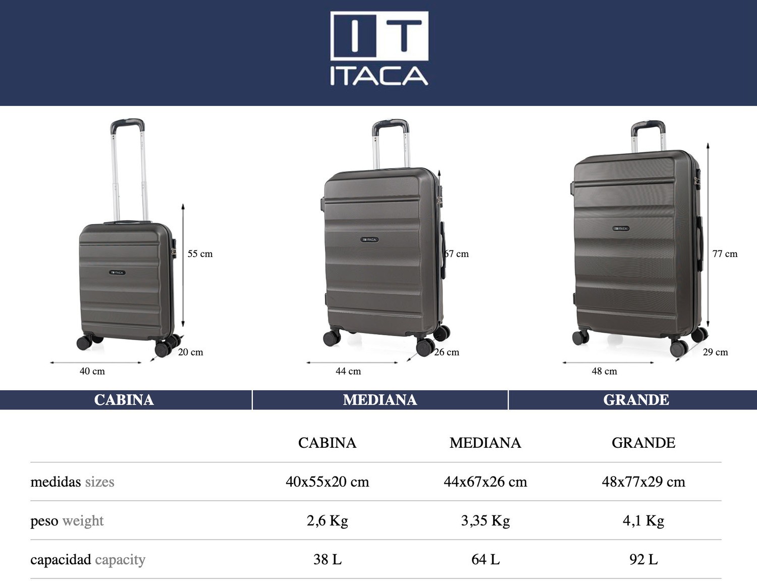 Maleta Trolley Cabina pequeña de la firma ITACA. Equipaje de mano. Tamaño permitido low cost. Viajes cortos.