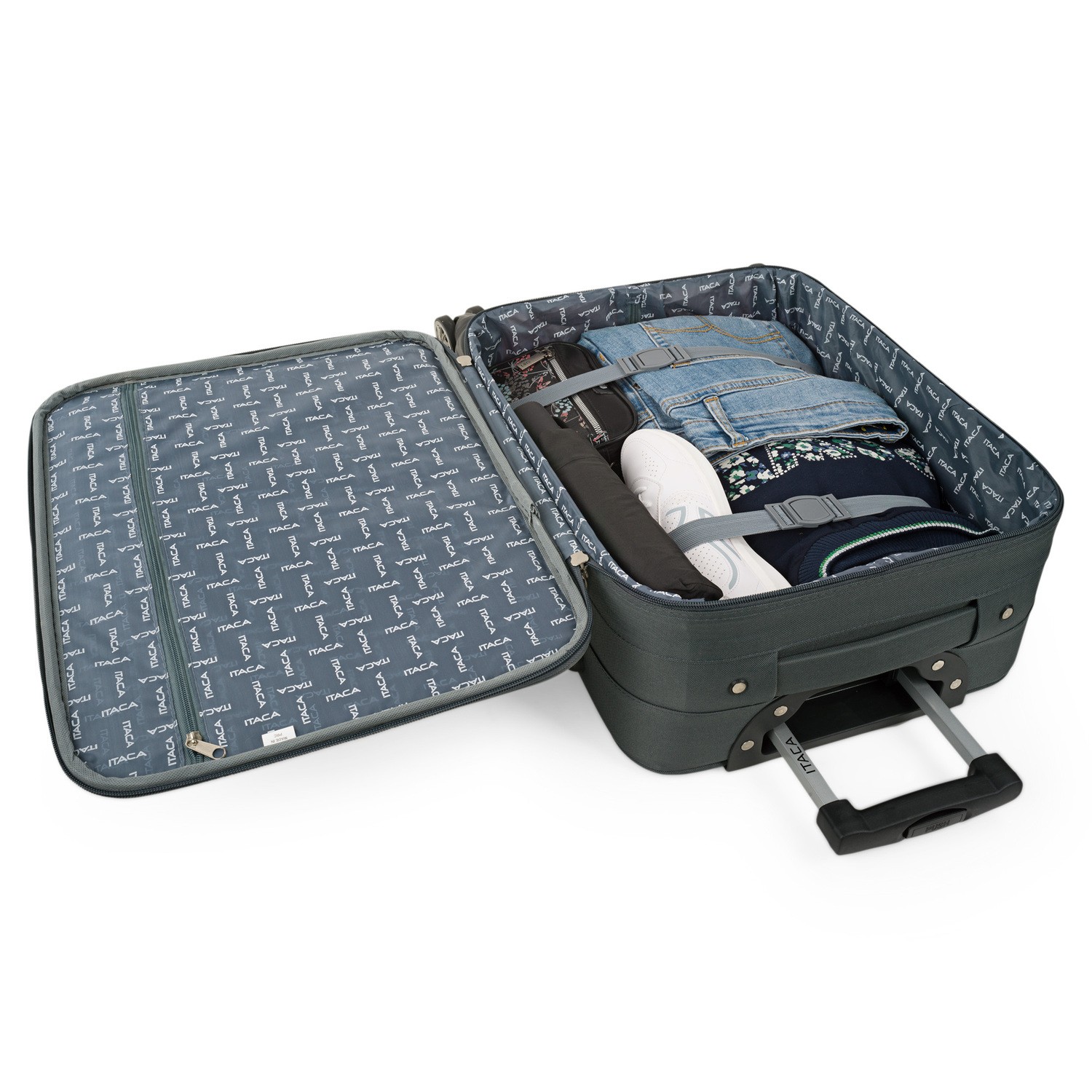 Unsere Kabinenkoffer sind perfekt für Ihre Reisen! Sie sind leicht und entsprechen den Größen- und Gewichtsbeschränkungen der Fluggesellschaft. Außerdem verfügen sie über Reißverschlusstaschen und interne Trennwände, um Ihre Sachen während der Reise organisiert und geschützt zu halten.