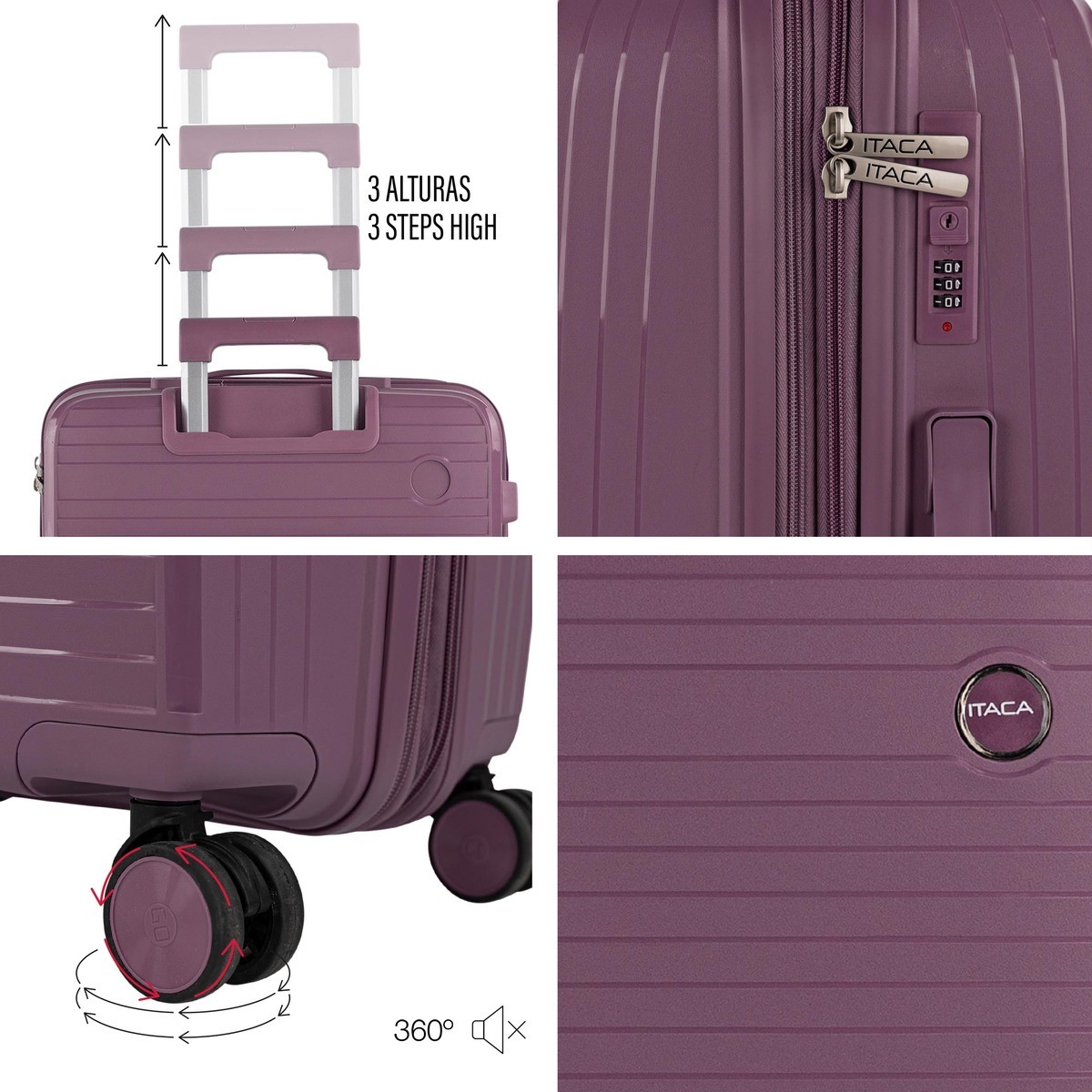 ITACA s MURRAY Collection Rigid Travel Luggage Set bietet Qualität und Funktionalität in jedem Teil. Dieses Reisegepäckset aus robusten Materialien garantiert Komfort und Haltbarkeit. Enthält vielseitige Reisegepäck-Sets mit TSA-Schloss und 360°-Rollen. Das Reisegepäck-Set ist ideal für alle Arten von Reisenden. Die leichte Struktur des Reisegepäcksets und die Qualität von ITACA zeichnen sich auf dem Markt aus. Erhältlich auch als optionale Koffersets und Koffersets, die sich an jeden Bedarf anpassen. Ideal für diejenigen, die Leistung und Stil suchen.