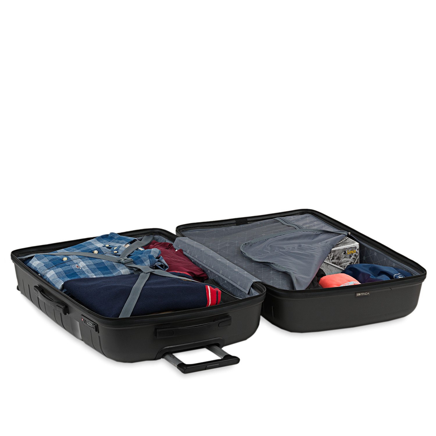 Sie sind unsere vollständigsten und hochwertigsten Koffer. Das besteITACA-Produkt.. Alle Produkte ITACA sind ein Qualitätmaßstab, sicherheit und zuverlässig. Diese mittlere Koffer bietet Ihnen eine ideale Kombination für jegliche Reisen, Kurze- langereisen und auch Wochenende. Die ITACA Koffer sind für Ihren maximaler Konfort in der Reise ausgelegt. Eingeschaften Abmessungen Gesamtabmeßung: 55 x 77.5 x 33cm Volumen ca. 110L Gewicht: 4,60 kg Außenseite Material: Rauer PP-Polypropylen gegen Kratzer und Verbeulung. Integriertes 3-stellig Vorhängeschloss TSA für zusätzliche Sicherheit. Die TSA-Bestimmungen gestatten es den Zollbehörden, Ihre Tasche zu überprüfen, ohne sie zu beschädigen. Reißverschluss: Doppel-Cursor mit Löcher für Vorhängeschlösser. Sanft Schlupf. Oberer und seitlicher Griffen. Horizontale Stützwächter. Ein bequemer Koffer für jede Gelegenheit Ergonomischer Doppelrohr-Teleskopgriff mit Blockierende Knopf. 4 Doppelräder omnidirektionale 360° drehbare. Sanft Schlupf. Innenseite Bedrucktes Innenfutter Zentrales Abscheiderfach mit Reißverschluss. Kulturtasche für die kleine Sachen. Verstellbare Befestigungsbänder. Mehrere Fächer. Sehr vollständig