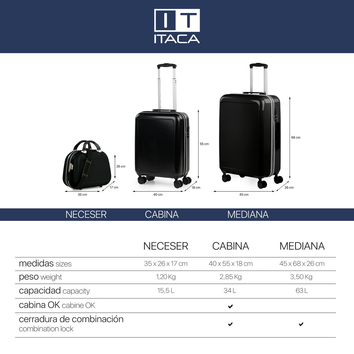 Neceser rigido de viaje grande de Policarbonato, maleta de aseo de la firma ITACA. Diseño original, único y exclusivo de la marca. Neceser Grande Mujer Con Espejo Interior. Alta resistencia y durabilidad, este producto es el resultado de la evolución de la marca Itaca en su continua búsqueda de la mejor calidad al mejor precio. Neceser Maleta de Viaje , neceser mujer viaje. Máxima calidad en materiales y costuras. Muy resistente al desgaste. Neceser Maquillaje Organizador. En el interior hemos optimizado el espacio al máximo para llevar todo lo necesario sin perder detalles. Medidas: 33x26x16 cm. Peso: 1,2 kg. Material: Policarbonato.
