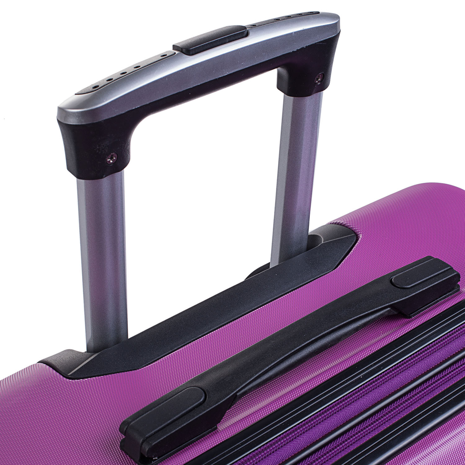 Dispone de una asa superior y lateral en todas las maletas. La cremallera es con doble cursor y tiene una cerradura de combinación. La maleta pequeña mide 38 x 54 x 20cm y pesa 2,85 Kg, es apta para LOW COST. La maleta mediana mide 42 x 65 x 26cm EXTENSIBLE y pesa 3,75 Kg. La maleta grande mide 47 x 75 x 30cm EXTENSIBLE y pesa 4,30 Kg. Las maletas son de ABS.