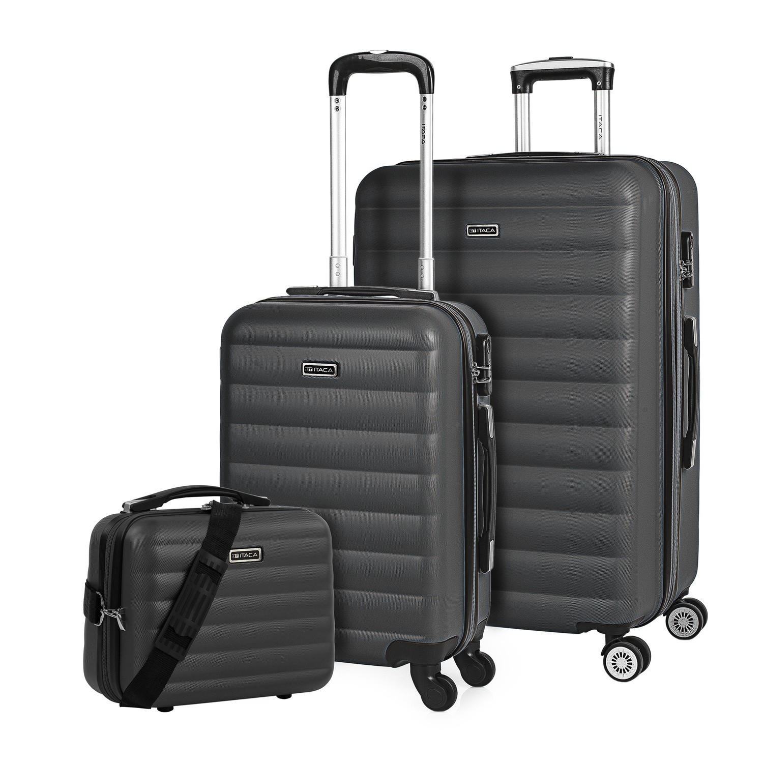 Juego de maletas de viaje rígidas trolley de la firma ITACA. Todos los productos ITACA son un referente de calidad, seguridad y confianza. ITACA es una firma con mucha experiencia en el diseño y fabricación de productos de viaje. Un producto ITACA será siempre tu fiel compañero de viaje. Este set de 2 maletas te ofrece una combinación ideal para todo tipo de viajes, de fin de semana, cortos y largos. Las maletas ITACA están diseñadas para tu máximo confort en el viaje. Características principales Dimensiones Cabina (Cumple la normativa de equipaje de mano de EasyJet, Iberia, Ryanair, etc.) Total: 55x38x20 cm Cuerpo: 48x37x20 cm Volumen: 35 L Peso: 2,85 kg Grande XL Total: 75x50x30 cm. Cuerpo: 68x48x30 cm. Volumen: 100 L Peso: 4,00 kg Exterior Material: ABS texturizado antirayaduras. Cierre: