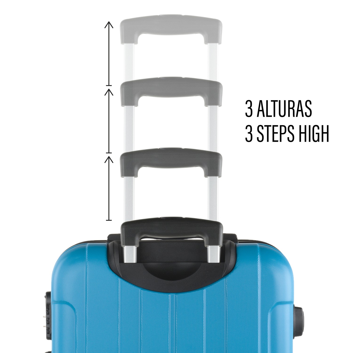 La maleta grande mide 48 x 73 x 28 cm. y pesa 3,90 kg.