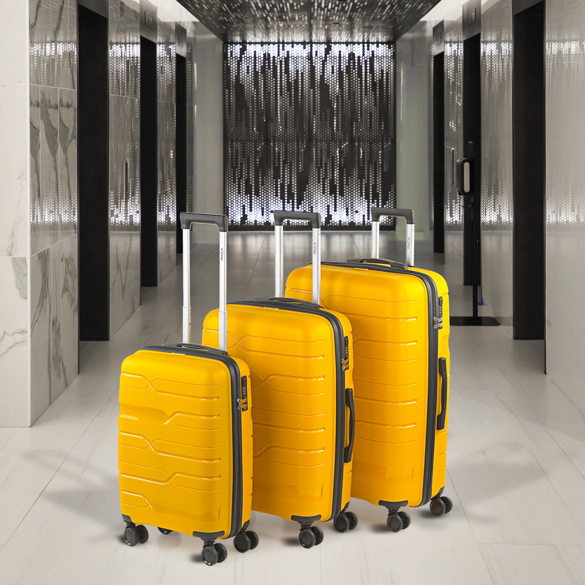 Lot de 3 valises de voyage à roulettes de la firme ITACA en polypropylène PP.
