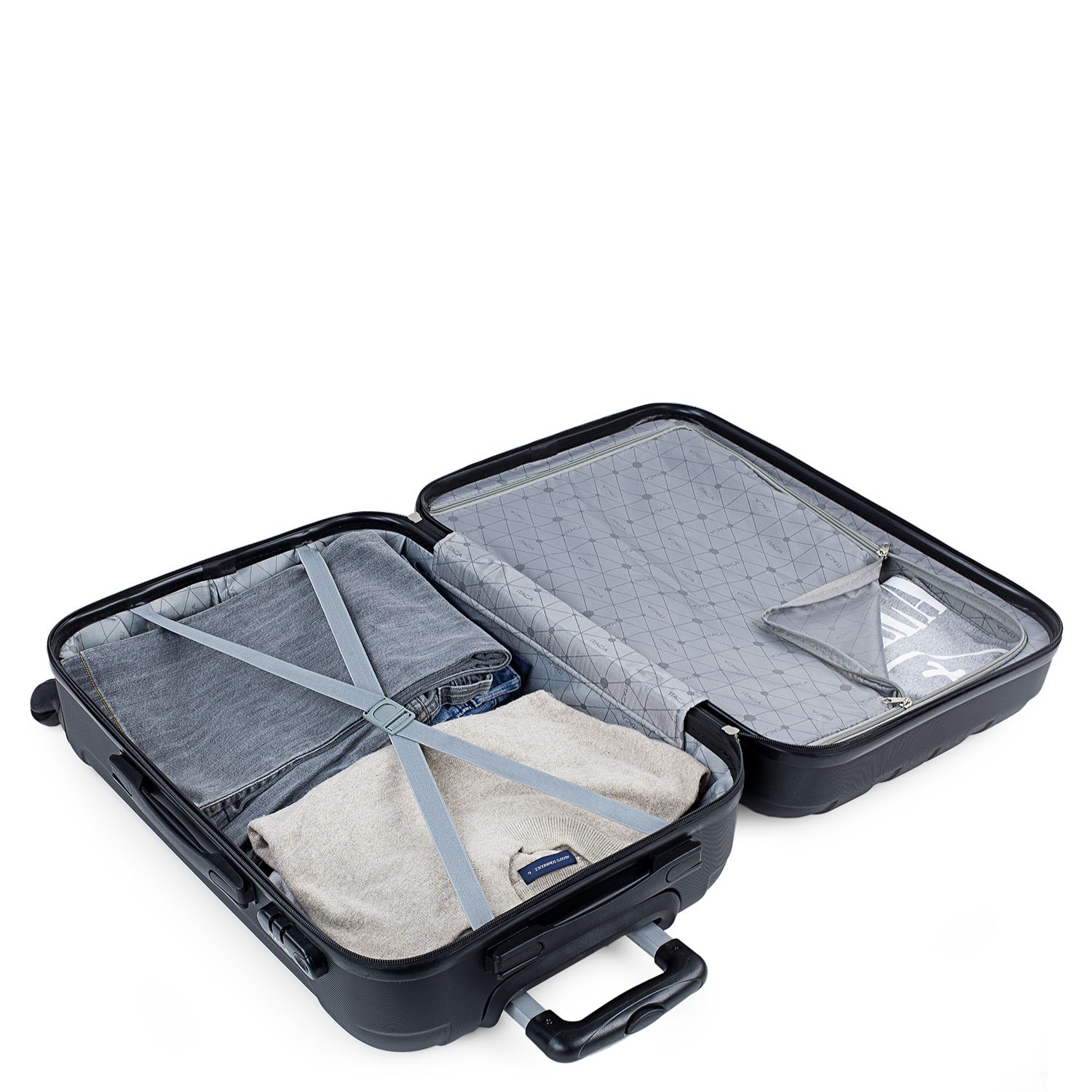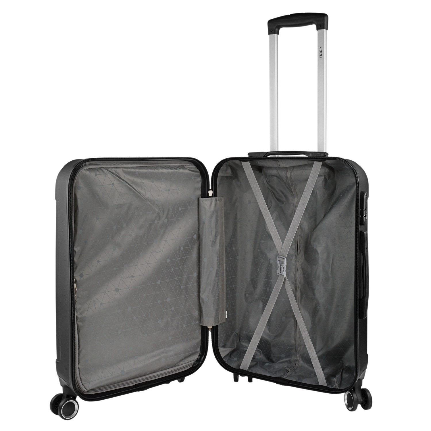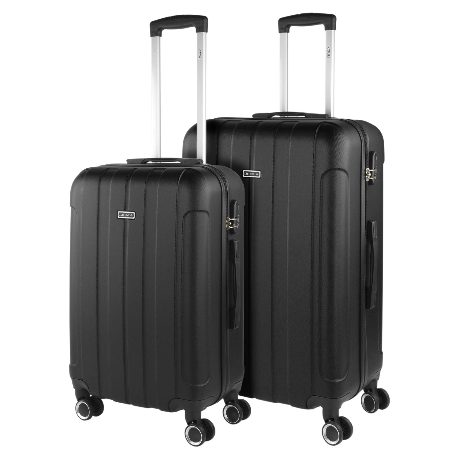 Ensemble de 2 valises pour chariot de voyage de la société ITACA. Tous les produits ITACA constituent une référence en matière de qualité, de sécurité et de confiance. ITACA est une entreprise possédant une grande expérience dans la conception et la fabrication de produits de voyage. Un produit ITACA sera toujours votre fidèle compagnon de voyage. Cet ensemble de 3 valises offre une combinaison idéale pour tous les types de voyages, week-end, courts et longs. Les sacs ITACA sont conçus pour un maximum de confort pendant le voyage. Dimensions Cabine (conforme aux réglementations sur les bagages d EasyJet, Iberia, Ryanair, etc.) Total: 55x37x20 cm Corps: 48x35x20 cm Volume: 35 L Poids: 2,60 kg Moyen Total: 64x42x23 cm Corps: 57x40x23 cm Volume: 65 L Poids: 3,30 kg Big XL Total: 73x49x27 cm Corps: 66x47x27 cm Volume: 100 L Poids: 3,80 kg Principales caractéristiques Extérieur Matériau: ABS texturé anti-rayures. Léger et résistant aux chocs. Fermeture: cadenas à 3 chiffres intégré pour plus de sécurité. Fermeture à glissière: curseur double avec trous pour cadenas. Très bon glissement. Poignées: Poignées rétractables supérieures et latérales. Protecteurs de soutien horizontaux. Confort maximal dans toutes les positions. Poignée: Manche télescopique ergonomique réglable avec bouton de verrouillage. Roues: 4 roues omnidirectionnelles rotatives à 360 ° pour une plus grande maniabilité. Intérieur Doublure intérieure à motifs. Compartiment séparateur avec fermeture à glissière. des bandes de serrage réglable. Plusieurs compartiments. Très complet