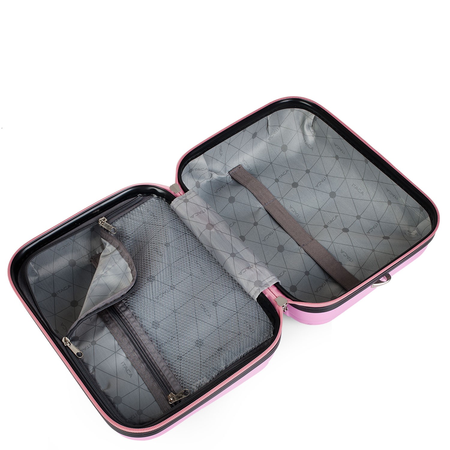 Seet de 3 valises de voyage et étui de beauté de la firme ITACA. Tous les ITACA produits sont une référence en matière de qualité, de sécurité et de confiance. ITACA est une entreprise avec beaucoup d expérience dans la conception et la fabrication de produits de voyage. Un produit ITACA sera toujours votre fidèle compagnon voyage. Cet ensemble vous offre une combinaison idéale pour les voyages, jusqu à une semaine. Les ITACA bags sont conçus pour votre maximum de confort sur le voyage. Dimensions Cabin (conforme aux réglementations sur les bagages d EasyJet, Iberia, Ryanair, etc.) Total: 55x38x20 cm Corps: 48x37x20 cm Volume: 35 L Poids: 2,80 kg Mélium Total: 66x41x27 + 5 cm. Extensible 5 cm. Corps: 59x39x27 + 5 cm Volume: 70 L Poids: 3,50 kg L Total: 76x49x30 + 5 cm. Extensible 5 cm. Corps: 69x47x30 + 5 cm Volume: 110 L Poids: 4,40 kg Beauty cas 33x26x14 cm 0,80 kg Fonctions principales Extérior Matériau : ABS texturé anti-rayures. Fermeture : serrure de combinaison intégrée à 3 chiffres. Zip: Double curseur avec des trous pour cadenas. Glisse très lisse. Poignées : Poignées rétractables supérieures et latérales. Confort maximum dans n importe quelle position. Poignée : Poignée télescopique ergonomique à double tube avec bouton de verrouillage. Roues: 4 roues doubles omnidirectionnelle tournant 360 °. Moyenne extensible jusqu à 25% de son volume. Rigide, léger et résistant aux bosses et aux rayures. Interior Doublure intérieure à motifs. Compartiment séparateur avec fermeture éclair. Bandes élastiques réglables de soutien. Compartiments multiples. Très complet.