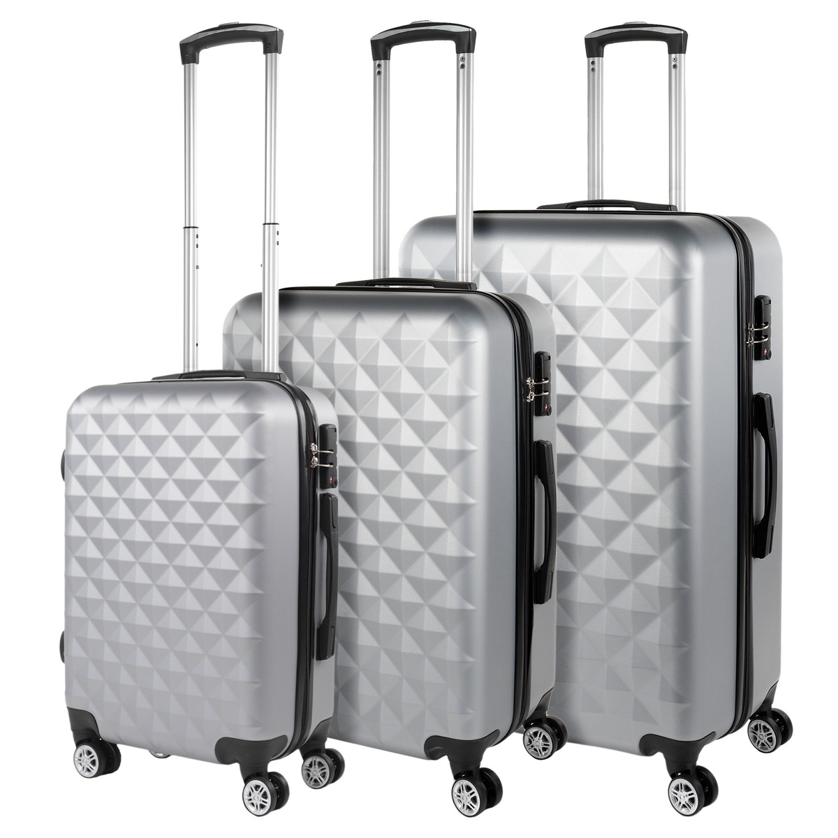Grandes valises de voyage de la marque Ithaca. Ensemble de 3 grandes, moyennes et petites valises cabine. Haute résistance et durabilité, ce produit est le résultat de l évolution de la marque Itaca dans sa recherche continue de la meilleure qualité au meilleur prix. L intérieur est doublé de Nylon personnalisé selon le design de la valise. Pour l organisation des bagages a des sangles, des poches et des fermetures à glissière pour assurer la fixation et l ordre. Les 4 roues doubles assurent un transport facile et gérable, la poignée extensible adapte la valise à n importe quelle hauteur d utilisateur et la fermeture TSA offre la tranquillité d esprit de passer par n importe quelle douane sans avoir à forcer et casser l ouverture par les autorités. Mesures: 49,5x77,5x27 cm. Poids: 10,22 kg. Matériel: ABS. Mesures médianes: 43,5x67,5x24 cm. Poids: 3,4 kg. Capacité: 60,5 L. Matériel: ABS. Grandes mesures: 49,5x77,5x27 cm. Poids: 4,08 kg. Capacité: 90,72 L.