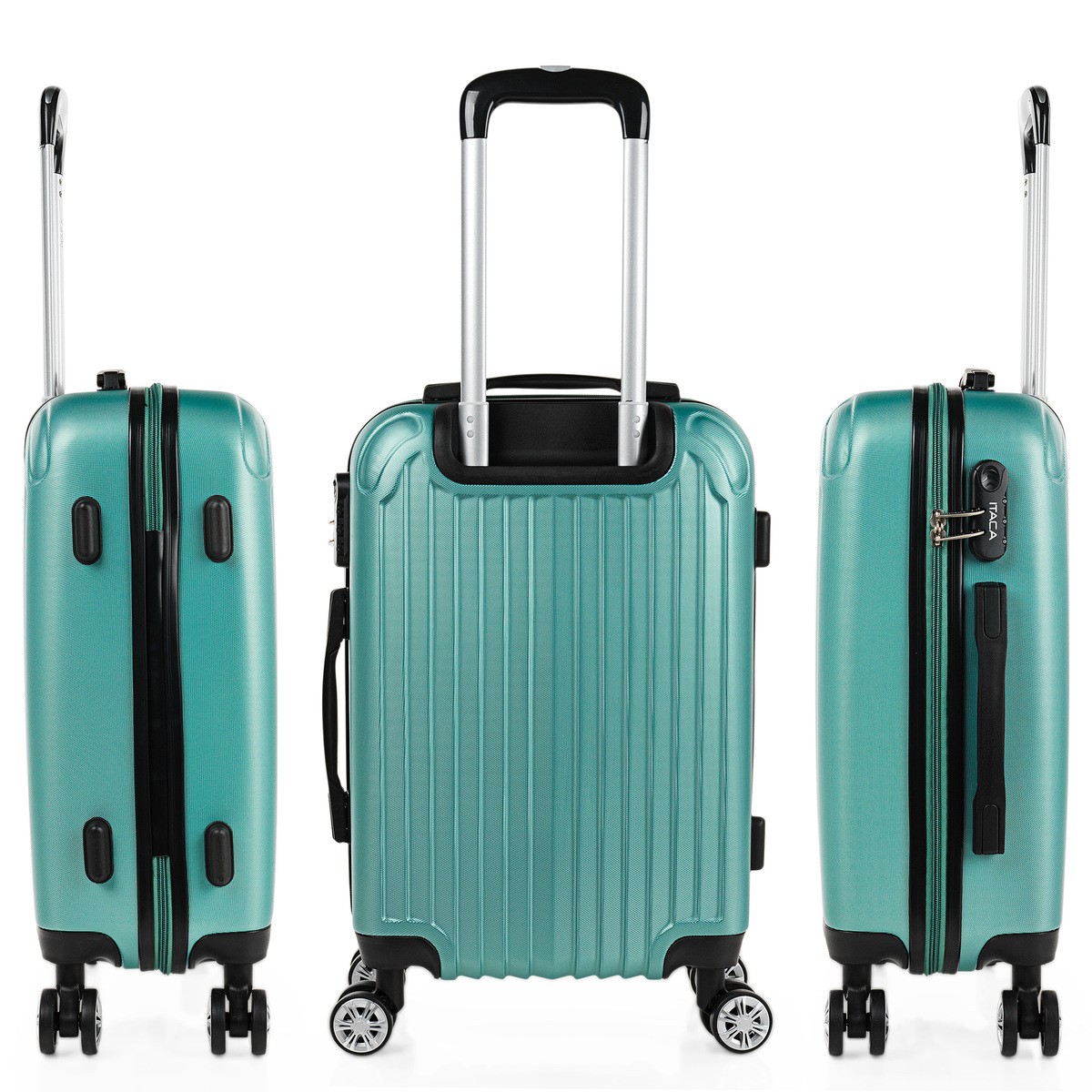 Rigide, résistante et légère. Poignée télescopique et 4 roues multidirectionnelles. Cadenas à combinaison intégré.