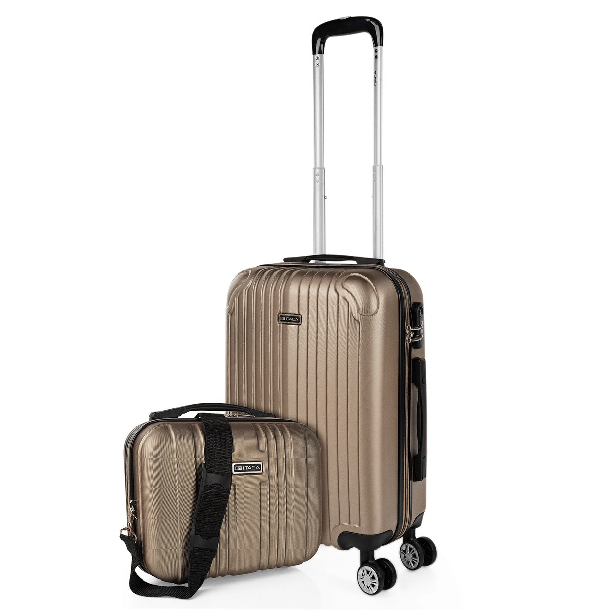 Ensemble de valise trolley, cabine et étui de beauté ABS, marque ITACA. Bagages à main. Taille autorisée pour les vols low cost. Courts voyages. Tous les produits ITACA sont un référent de qualité, de sécurité et de confiance. ITACA est une marque avec beaucoup d expérience dans la conception et la fabrication de produits de voyage. Un produit ITACA sera votre fidèle compagnon de voyage. Cet ensemble de 2 pièces est la combinaison parfaite pour les longs voyages. Les valises ITACA sont conçues pour vous offrir un maximum de confort lors de vos voyages. Caractéristiques principales taille: Cabine (Approuvé comme bagage à main EasyJet, Iberia, Ryanair, etc.) Total: 55x38x20 cm Bocy: 48x37x20 cm Capacité: 35 L Poids: 2,80 kg Étui beauté Taille: 33x26x14 cm capacité: 15 L Poids: 0,80 kg extérieur Matériel: ABS anti-rayures texturé. Cadenas à combinaison, 3 chiffres. Double curseur avec trous pour le cadenas. Poignées rétractables supérieures et latérales. Confort maximal dans n importe quelle position. Poignée télescopique avec bouton de blocage. 4 roues pivotantes à 360°. Moyen, extensible. Coque dure, légère et résistante. intérieur Doublure imprimée. Compartiment séparateur avec zip. Bandes élastiques réglables. Différents compartiments. Très complet.
