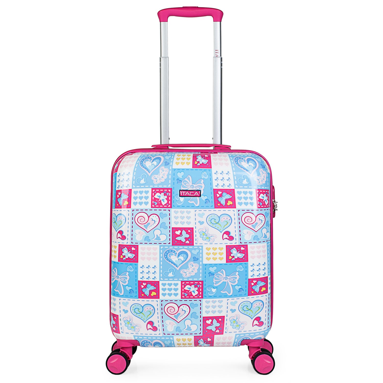 Valises de voyage pour enfants 4 roues avec voiture. Polycarbonate imprimé. 2 tailles: petit et moyen. Rigide Confortable et Léger. Belle conception. ITACA s engage à assurer la qualité de tous ses produits. Nos produits sont conçus pour vous offrir un maximum de confort lors de vos voyages. Cet ensemble de 2 valises vous offre une combinaison idéale pour des voyages de moins de 2 semaines.  ITACA. Votre fidèle compagnon de voyage.   Caractéristiques principales: Dimensions: Cabine (conforme aux réglementations sur les bagages à main de EasyJet, Iberia, Ryanair, etc.) Total: 55x40x20 cm, Corps: 48x39x20 cm, Poids: 2,65 kg, Extérieur: Matériel: polycarbonate imprimé PC. Fermeture: cadenas à 3 chiffres intégré. Fermeture à glissière: Double curseur avec trous pour cadenas. Glissant très lisse. Poignées: La poignée du haut dans une petite valise et le dessus et les côtés en grand. Confort maximal dans toutes les positions. Manche: Manche télescopique ergonomique à double tube avec bouton de verrouillage. Roues: 4 doubles roues omnidirectionnelles rotatives à 360 °.  Intérieur Doublure intérieure imprimée. Compartiment séparateur avec fermeture à glissière. Bandes élastiques de fixation ajustables. Très complet.