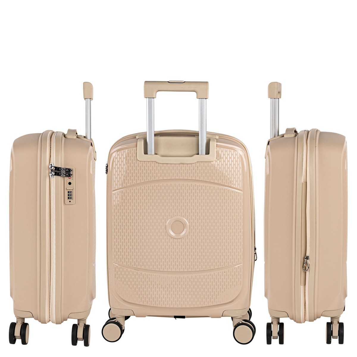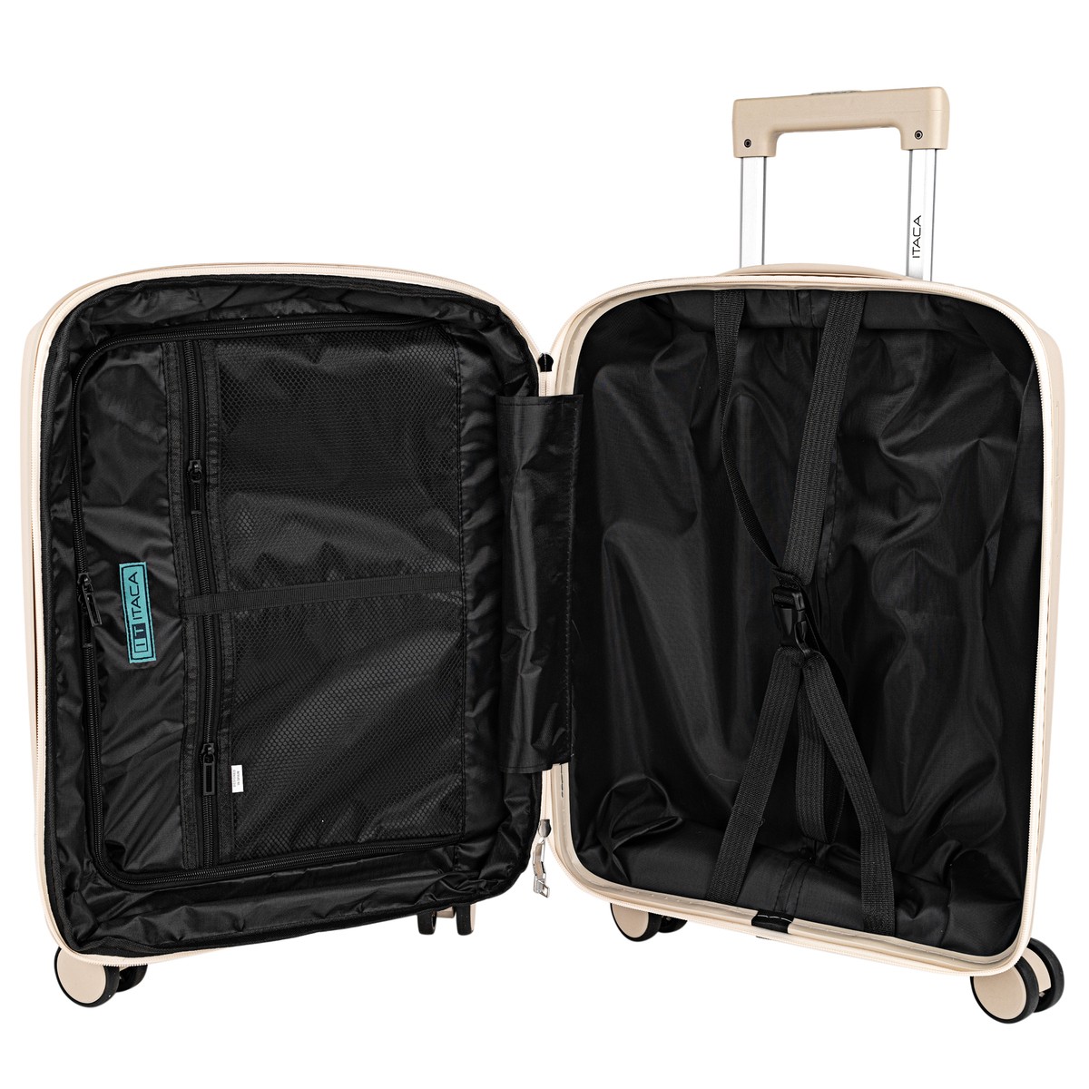 Valise cabine de voyage rigide avec roues doubles en polypropylène haute résistance de la marque ITACA.