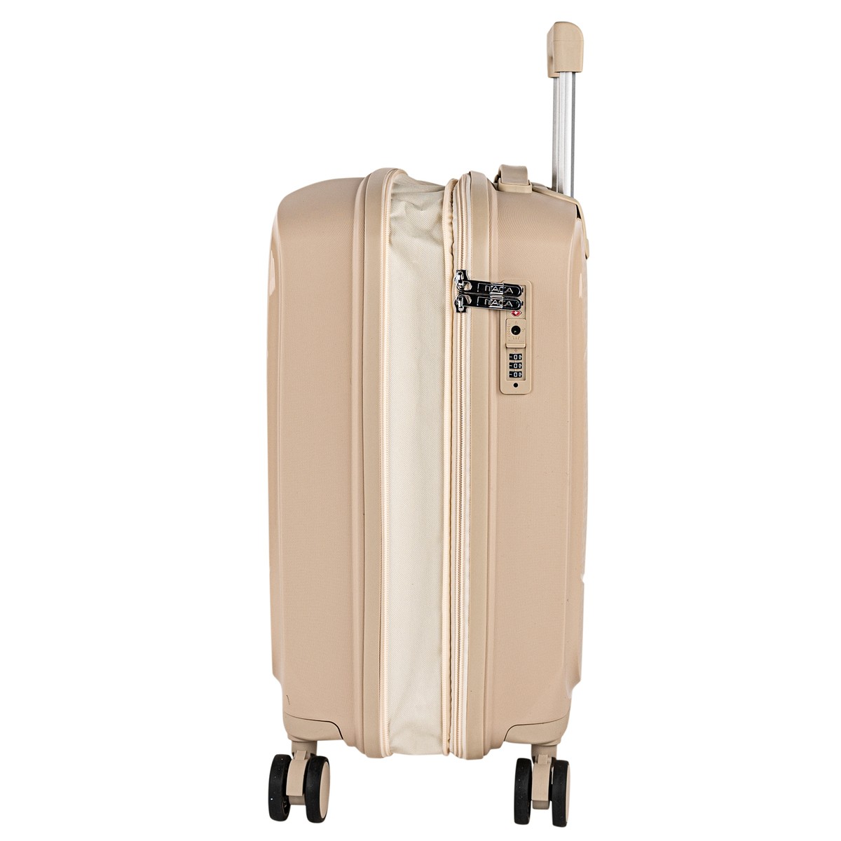 Nous avons utilisé du polypropylène de dernière génération, notre département R + D + I a choisi ce matériau pour ses qualités, il est ultra résistant et super léger, c est le meilleur matériau synthétique pour la fabrication de bagages.