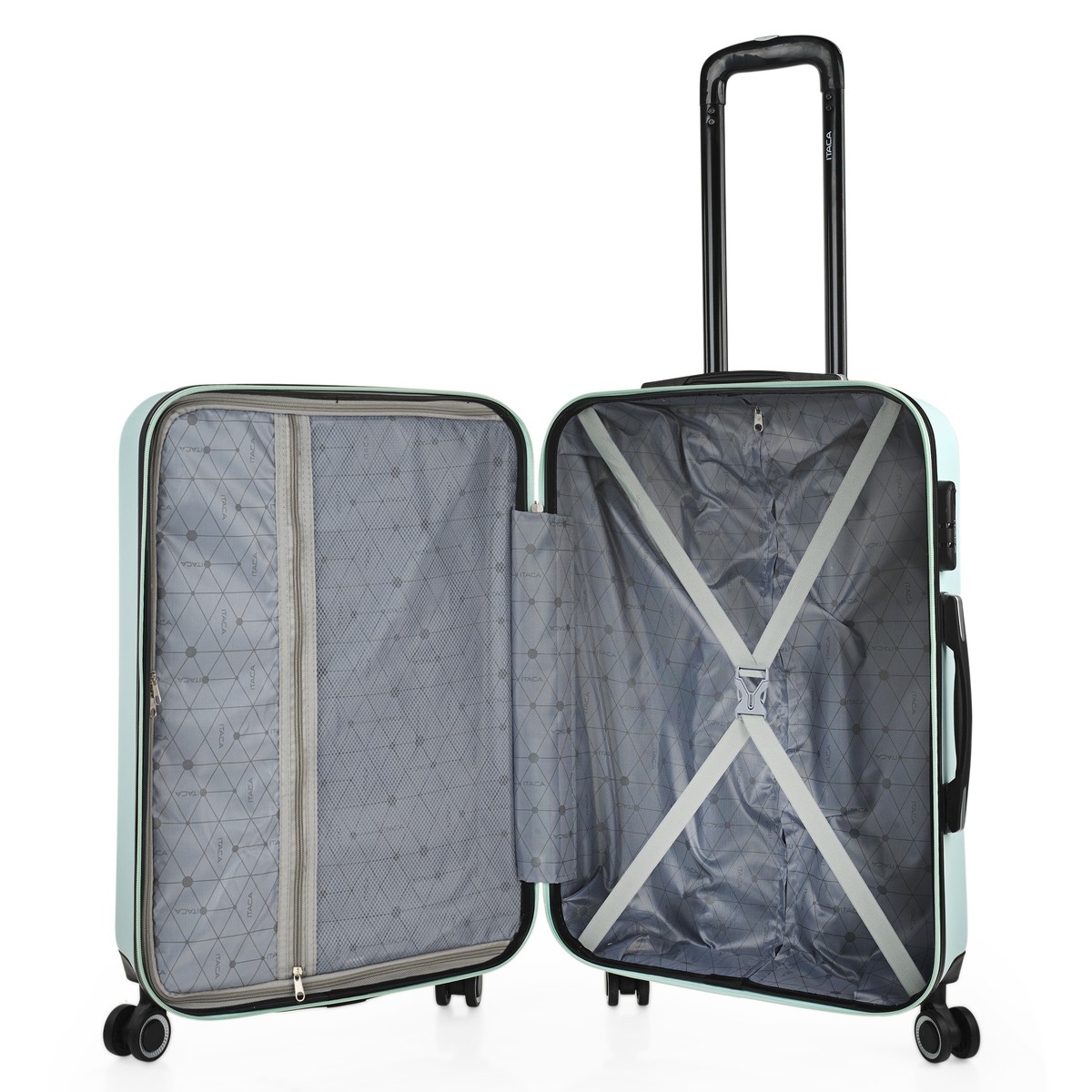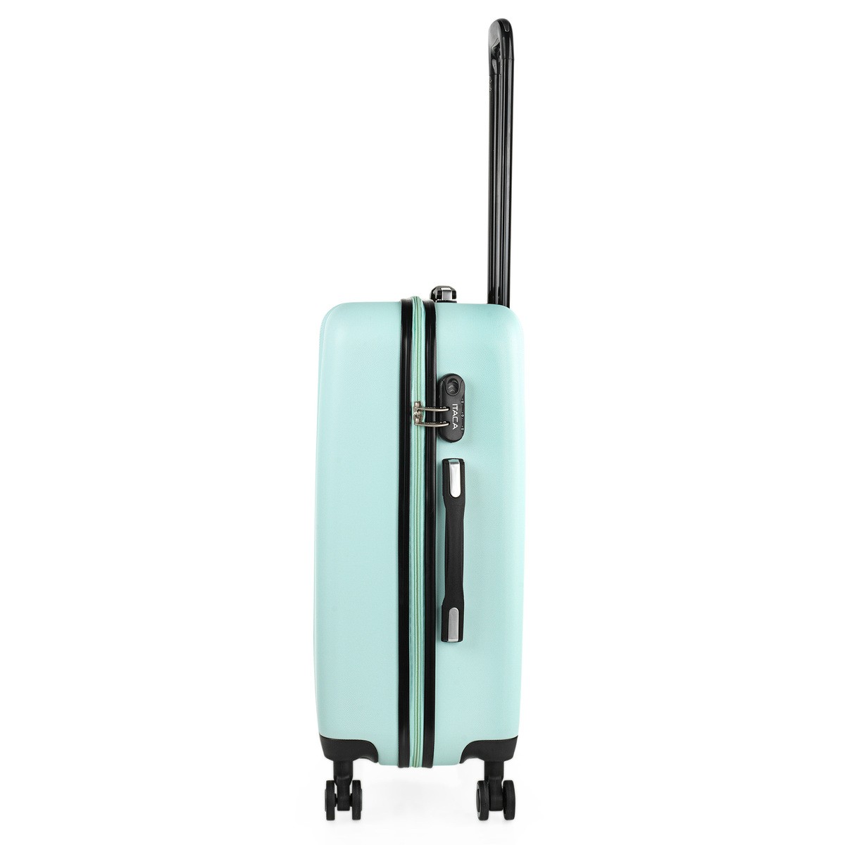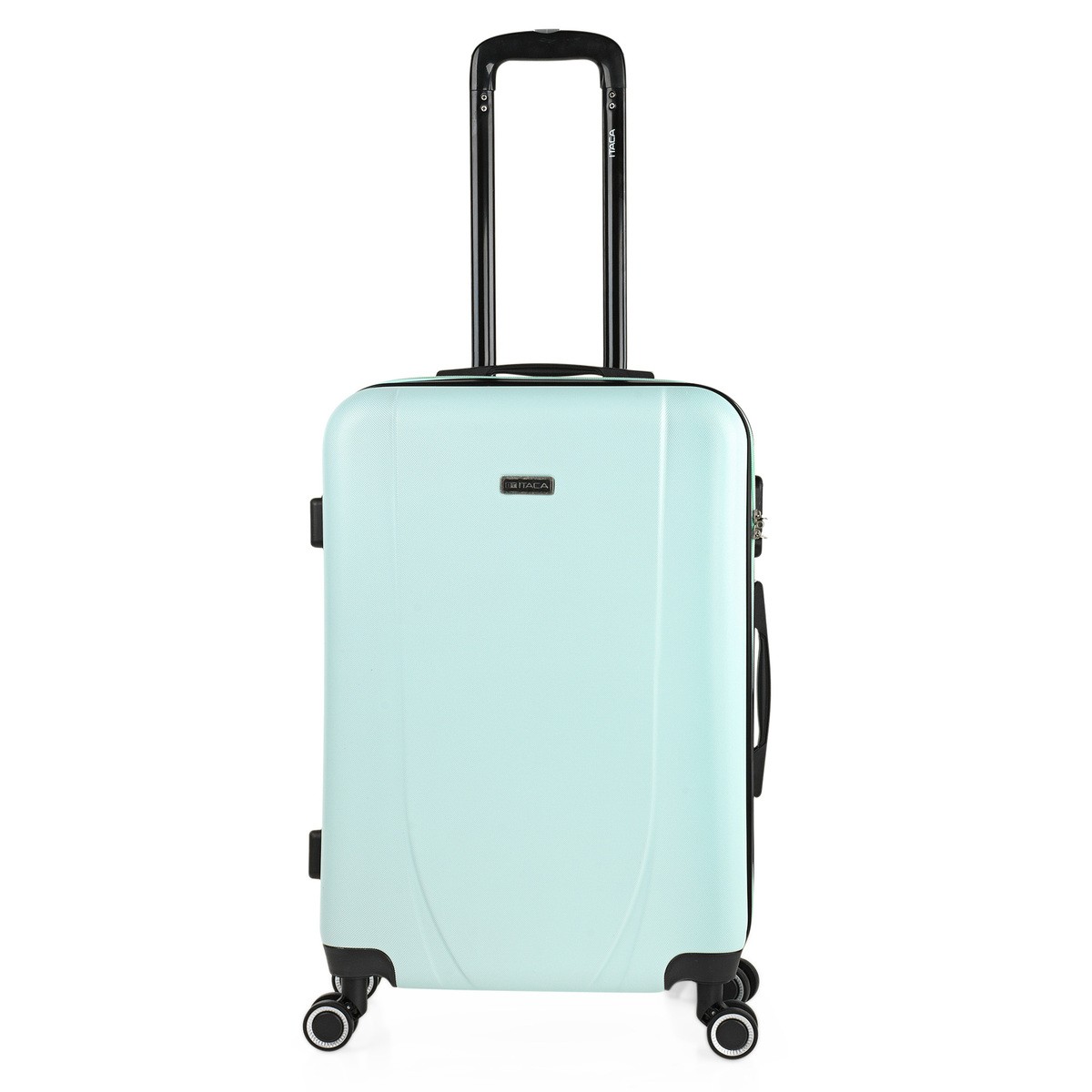 Support de chariot de la marque ITHACA avec un design exclusif et les caractéristiques de plusieurs couleurs bicolores. Avec roues pivotantes quatre et poignée télescopique. Avec doublure intérieure. Il a un haut et le côté poignée. La fermeture éclair est avec lit double et une serrure à combinaison. Les mesures de la grande valise. Le support de valise mesure 44 65 de 24 cm. Les valises sont ABS.