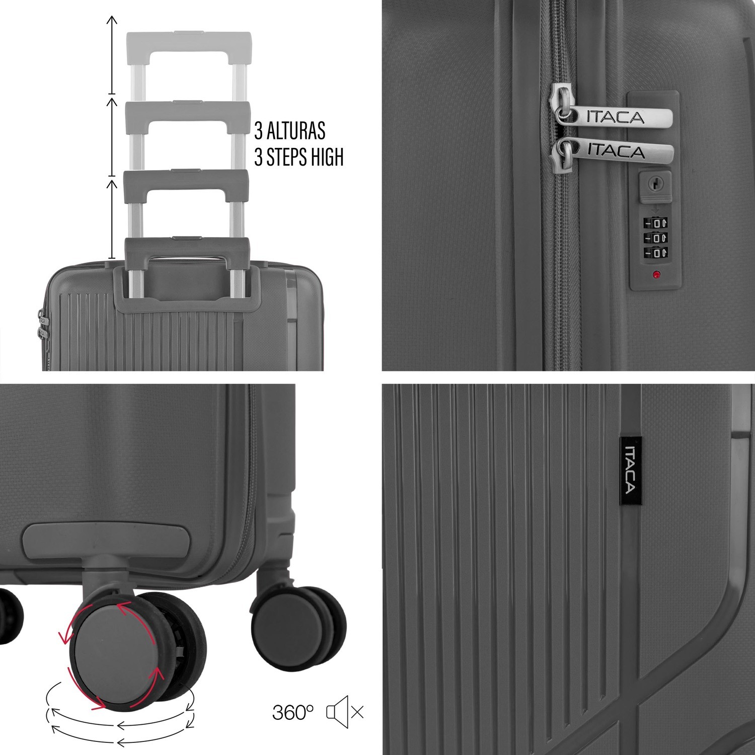 Discover ITACA s new collection, specializing in Cabin Travel Luggage 55X40X20. Designed to meet airline standards, this carry-on suitcase is durable, lightweight and functional. With the ideal size of 55X35X25, its trolley-style design and excellent finish materials ensure durability, mobility and style. Perfect as Hand Luggage, Cabin Luggage and Suitcase 55X40X20 for any type of travel. The collection stands out for the selection and quality of materials.