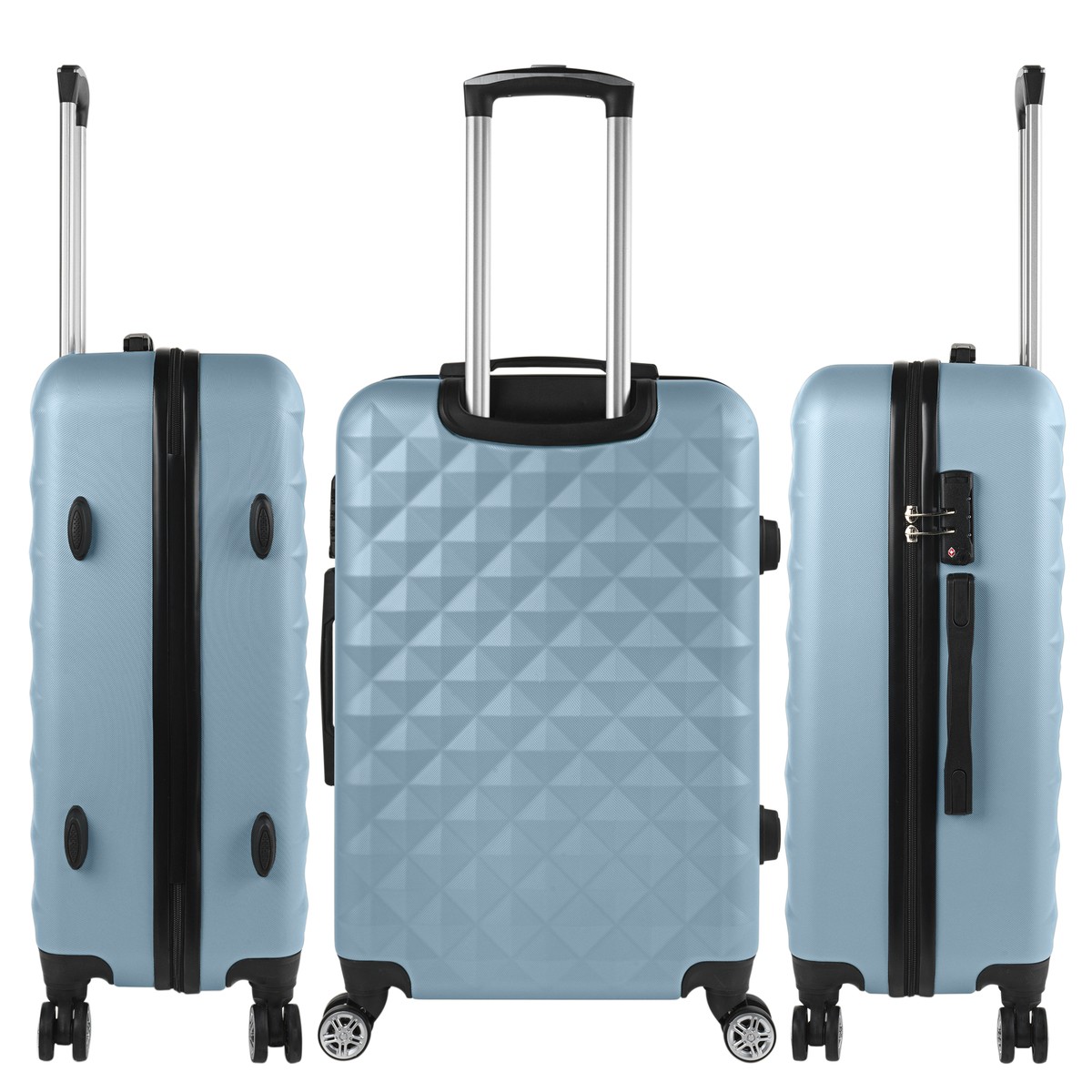 Number One Travel Suitcase Set within the Travel Suitcases of the ITACA firm. Hand luggage. High resistance and durability, this product is the result of the evolution of the ITACA brand in its continuous search for the best quality at the best price. The interior is lined with custom Nylon according to the design of the suitcase. For the organization of luggage has straps, pockets and zippers to ensure fastening and order. The 4 double wheels ensure easy and manageable transport, the extendable handle adapts the suitcase to any user height and the TSA closure provides the peace of mind of going through any customs without having to force and break the opening by the authorities. Median measures: 43,5x67,5x24 cm. Weight: 3.4 kg. Capacity: 60.5 L. Large measures: 49,5x77,5x27 cm. Weight: 4.08 kg. Capacity: 90,72 L. Material: ABS.