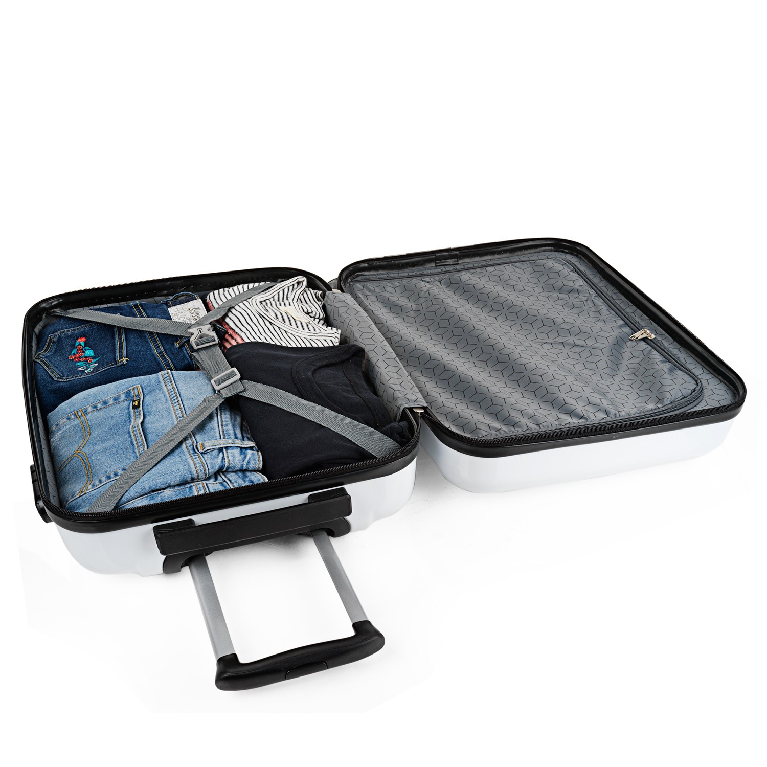 In breve, se stai cercando un set di valigie resistente, comodo e dal design accattivante, il set di valigie composto da una valigia cabinata, una valigia media e una borsa da toilette in policarbonato rigido decorata è unopzione eccellente per te. Con il suo ampio spazio, la resistenza e lo stile, questo set di valigie è un investimento che durerà a lungo.