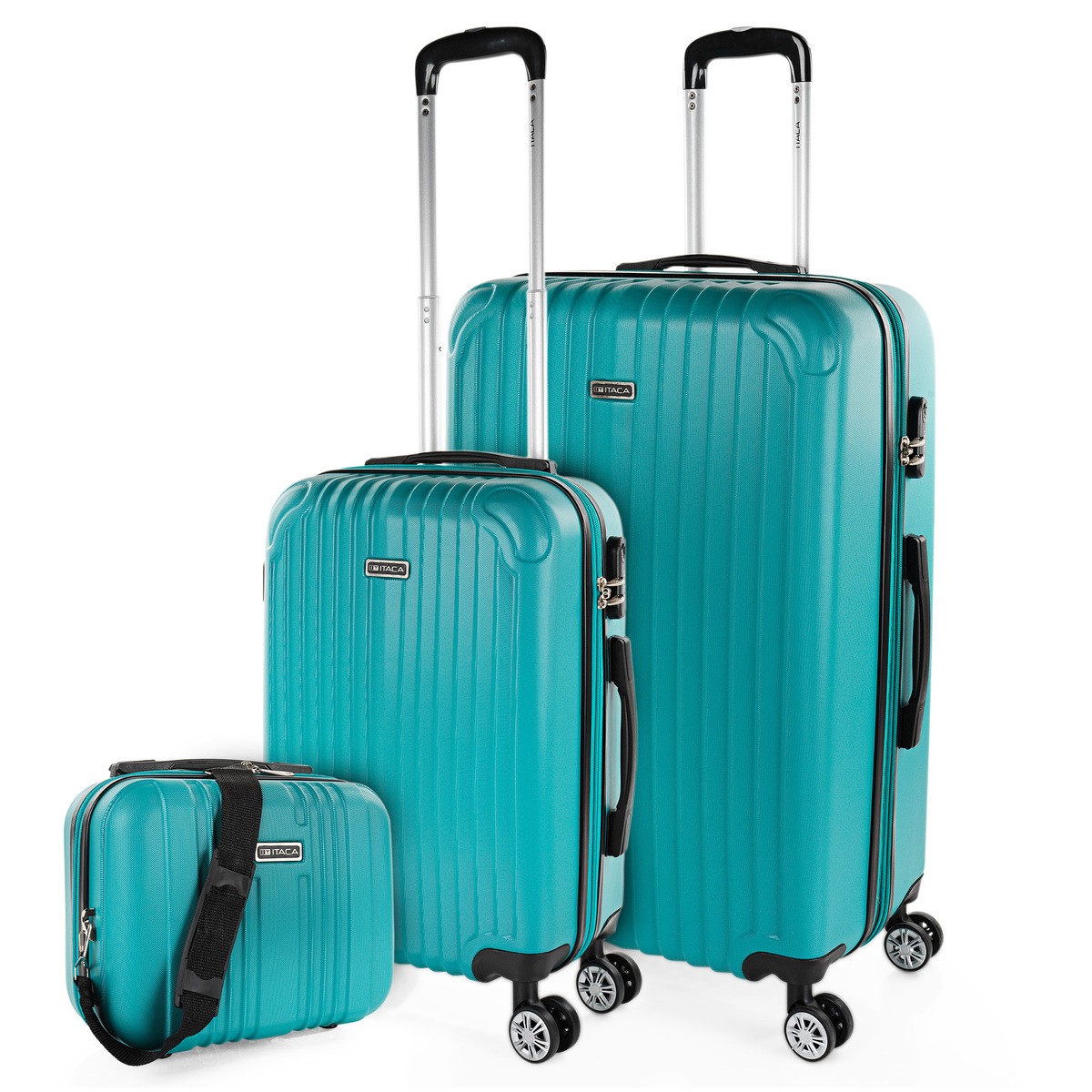 Set di 2 valigie da viaggio e beauty case della ditta ITACA. Tutti i prodotti ITACA sono un punto di riferimento per qualità, sicurezza e fiducia. ITACA è un azienda con molta esperienza nella progettazione e produzione di prodotti da viaggio. Un prodotto ITACA sarà sempre il tuo fedele compagno di viaggio. Questo set ti offre una combinazione ideale per viaggi, fino a una settimana. Le borse ITACA sono progettate per il massimo comfort durante il viaggio. dimensioni Cabina (Conforme alle norme sui bagagli di EasyJet, Iberia, Ryanair, ecc.) Totale: 55x38x20 cm Corpo: 48x37x20 cm Volume: 35 L Peso: 2.80 kg grande Totale: 76x49x30 cm Corpo: 69x47x30 cm Volume: 100 L Peso: 4.40 kg Beauty case 33x26x14 cm 0.80kg Caratteristiche principali esterno Materiale: ABS testurizzato antigraffio. Chiusura: Serratura a combinazione a 3 cifre integrata. Zip: Doppio cursore con fori per lucchetto. Scorrimento molto fluido. Maniglie: Maniglie retrattili superiori e laterali. Massimo comfort in qualsiasi posizione. Maniglia: Impugnatura telescopica ergonomica a doppio tubo con pulsante di blocco. Ruote: 4 ruote doppie rotanti omnidirezionali a 360°. Medio estensibile fino al 25% del suo volume. Rigido, leggero e resistente a urti e graffi. interno Fodera interna a motivi geometrici. Scomparto separatore con cerniera. Fasce elastiche di supporto regolabili. Scomparti multipli. Molto completo.