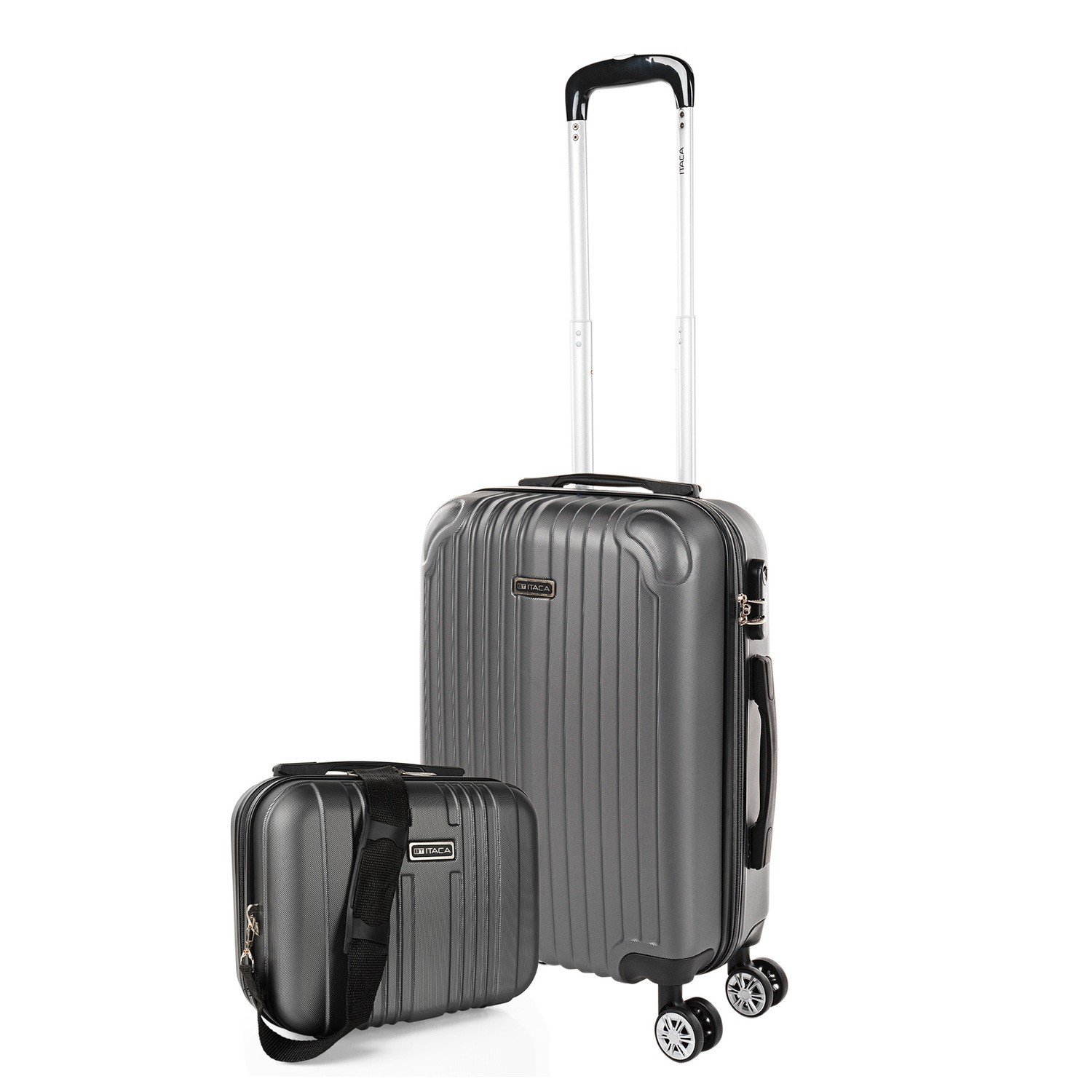 Set di trolley valigia, cabina e beauty case ABS, marchio ITACA. Bagaglio a mano. Dimensioni consentite per i voli low cost. Brevi viaggi.