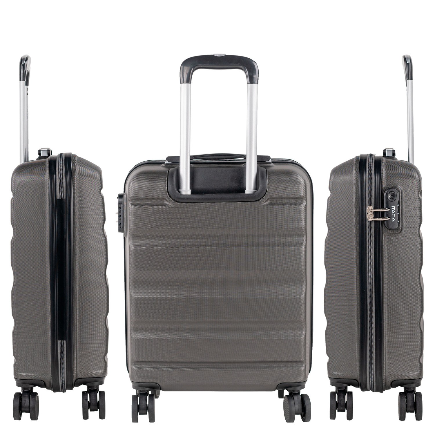 Petite valise cabine trolley de la marque ITACA. Bagage à main. Taille acceptée par les low cost. Voyages courts.