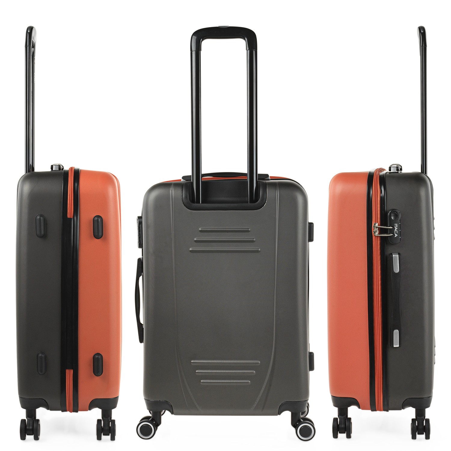 Carrello grande marca di Itaca con un design esclusivo e dispone di due diversi colori variopinti. Con quattro ruote girevoli e maniglia telescopica. Con fodera interna. Caratteristiche di una maniglia superiore e laterale. La cerniera è con il doppio e ha un lucchetto a combinazione. La valigia grande misura 50 x 75 x 30 cm e pesa 4,10 Kg. Le borse sono in ABS.