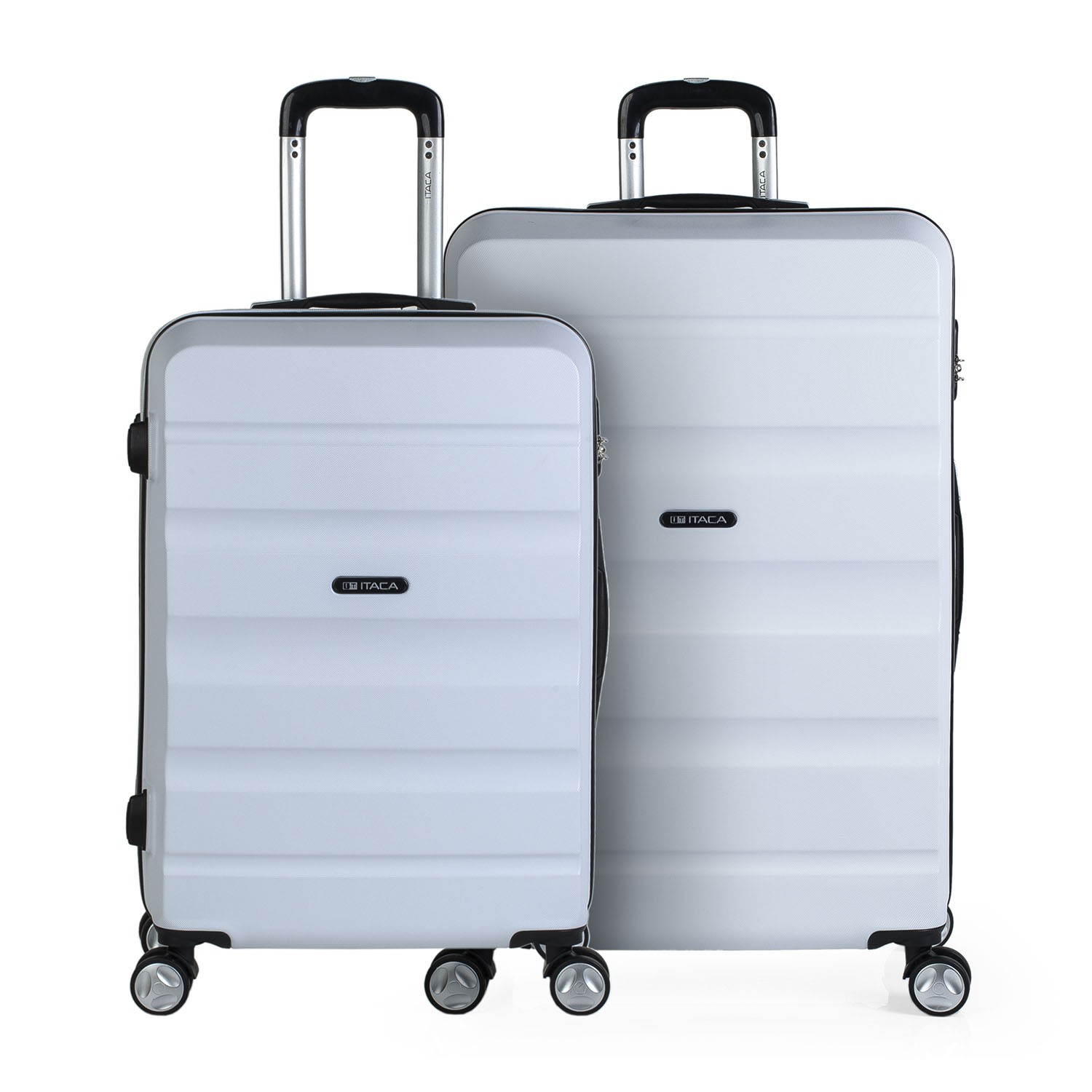 Conjunto de 2 malas de carrinho de viagem da marca ITACA. Todos os ITACA produtos são referência em qualidade, segurança e confiança. ITACA é uma empresa com muita experiência no design e fabricação de produtos de viagem. Um produto ITACA sempre será seu fiel companheiro de viagem. Este conjunto de 2 malas oferece-lhe uma combinação ideal para todos os tipos de viagens. Os bolsas ITACA são projetados para o seu máximo conforto na viagem. Dimensões Medium Total: 67x44x26 cm Corpo: 60x42x26 cm Volume: 65 L Peso: 3,35 kg Grande Total: 77x48x29 cm. Corpo: 70x46x29 cm Volume: 97 L Peso: 4,10 kg Principais características Exterior Material: ABS. texturizado anti-risco Fechamento: cadeado de combinação integrada de 3 dígitos para maior segurança. Cursor duplo com furos para cadeado. Deslizando muito suave. Alças: Alças retráteis superiores e laterais. Blocos de suporte horizontais. Máxima conforto em qualquer posição. Alça: Alça telescópica de tubo duplo ergonômico com botão de bloqueio. Rodas: 4- 360 ° rodas giratórias. Rígido, leve e altamente resistente a riscos. Interior Forro interno padronizado. Compartimento separador com zíper. Bandas de suporte ajustáveis. Vários compartimentos. Muito completo.
