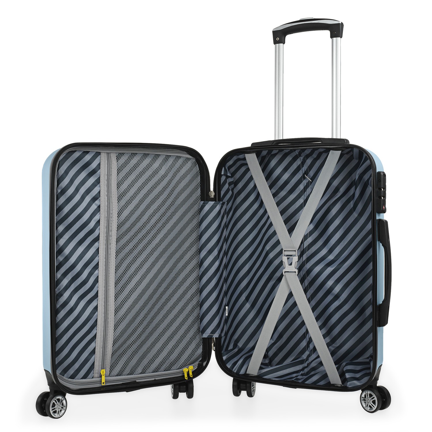 Bagagem de mão número um dentro das malas de viagem da empresa ITACA. Bagagem de mão. Tamanho permitido baixo custo. Bagagem de mão número um dentro das malas de viagem da empresa ITACA. Bagagem de mão. Tamanho permitido baixo custo. O interior é revestido com nylon personalizado de acordo com o design da mala. Para a organização da bagagem tem alças, bolsos e zíperes para garantir fixação e ordem. As 4 rodas duplas garantem um transporte fácil e gerenciável, a alça extensível adapta a mala a qualquer altura do usuário e o fechamento da TSA proporciona a tranquilidade de passar por qualquer alfândega sem ter que forçar e quebrar a abertura pelas autoridades. Medidas: 38x55x20 cm. Peso: 2,74 kg. Capacidade: 36 L. Material: ABS.