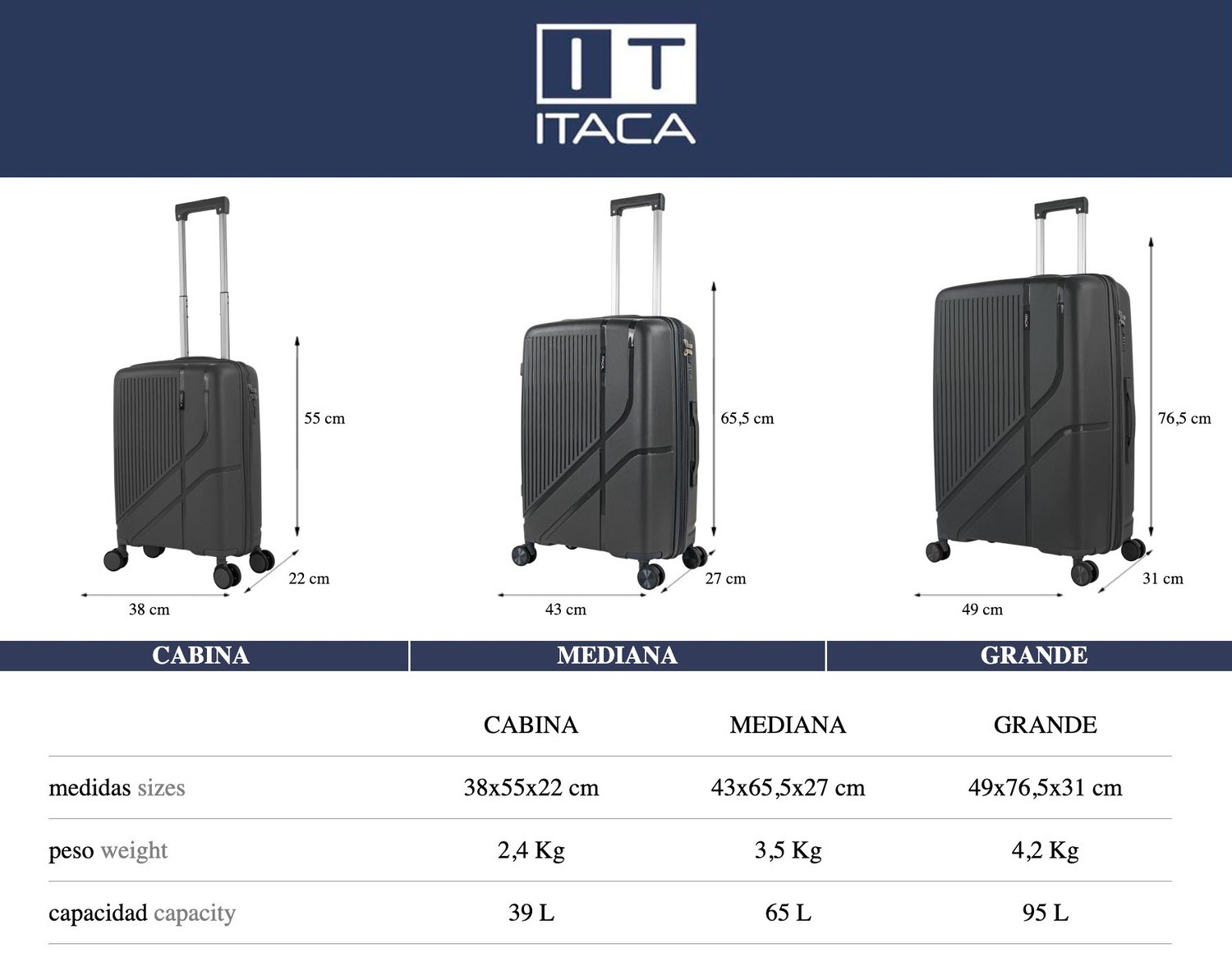 Malas médias 761300 Travel Pp Itaca Online rígidas/suaves com capacidade de 95 L