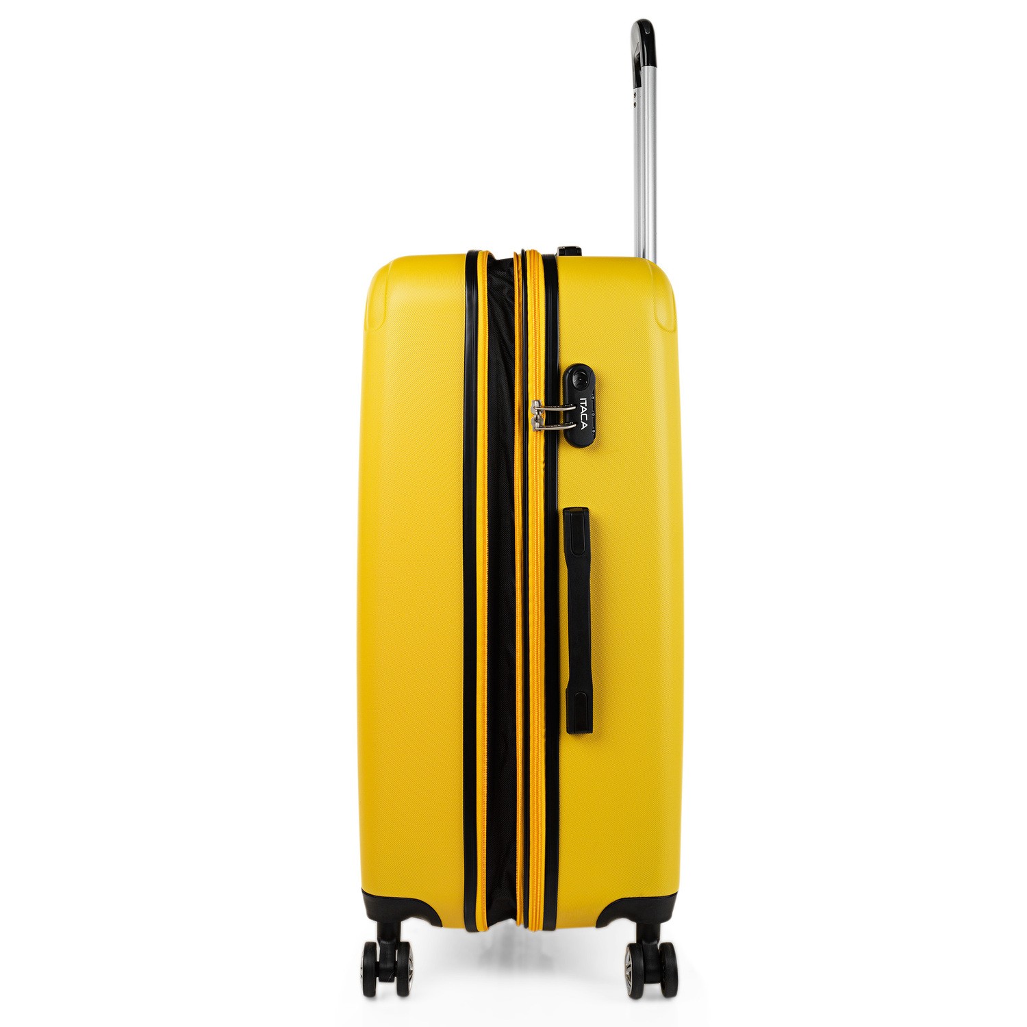 Desde a sua criação, a marca ITACA tem estado na vanguarda do design. Trolley mala tamanho 70 feita com ABS, um material leve e ao mesmo tempo resistente. Permite maior capacidade de manobra com as suas 4 rodas giratórias. A multidirecção de 360º do rolamento liso e o seu carro telescópico com bloqueio tornam o seu manuseamento mais confortável. Tem um zíper com cursor duplo e trava com a combinação LOCK para maior segurança. No interior, contemplamos o forro personalizado da marca, de acordo com o design exterior, com separação central. Ele contém cintas elásticas internas que permitem que o conteúdo seja mantido. As malas de 70 têm uma vantagem adicional para serem expansíveis e aumentam o tamanho da mala em 5 cm. A mala grande mede 49x76x30 + 5 cm. e pesa 4,4 kg.