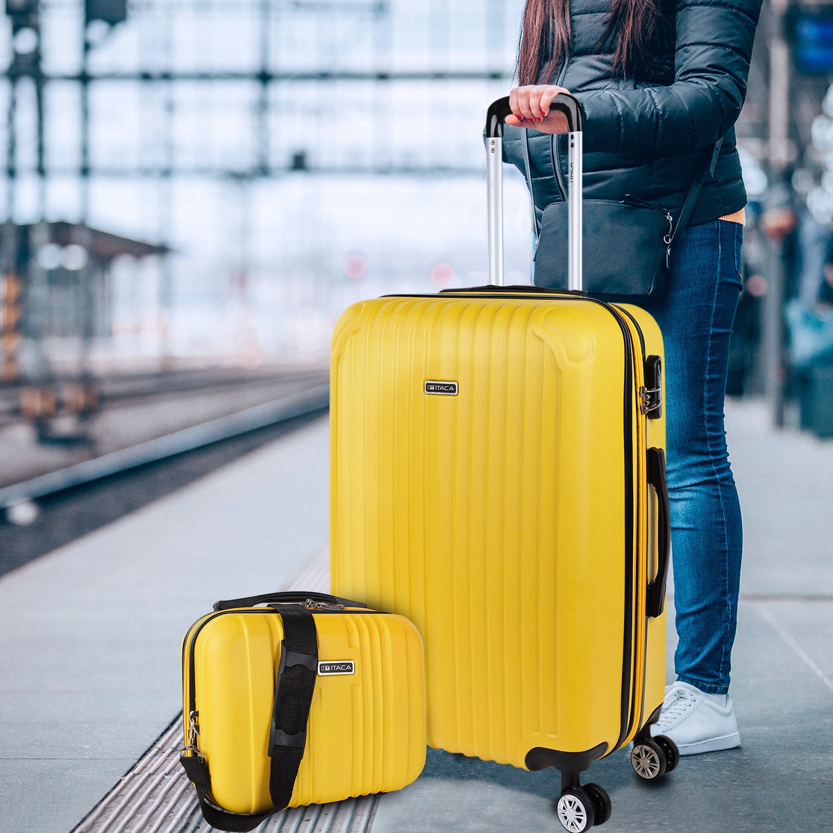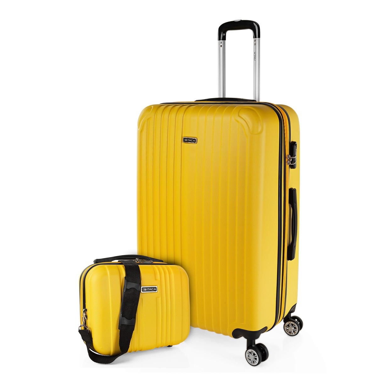 Conjunto de mala de carrinho grande e caixa de beleza ABS, marca ITACA. Todos os produtos ITACA são referência de qualidade, segurança e confiança. A ITACA é uma marca com muita experiência em design e fabricação de produtos de viagem. Um produto ITACA será seu fiel companheiro de viagem. Este 2 pcs definir é a combinação perfeita para viagens longas. As malas ITACA são projetadas para proporcionar o máximo de conforto em suas viagens. Principais características Dimensões: grande Total: 76x49x30 cm Corpo: 69x47x30 cm Volume: 100 L Peso: 4,40 kg Caso de beleza Tamanho: 33x26x14 cm capacidade: 15 L Peso: 0,80 kg exterior Material: ABS antiscratch texturised. Cadeado de combinação, 3 dígitos. Controle deslizante duplo com furos para o cadeado. Alças retráteis superiores e laterais. Máximo conforto em qualquer posição. Alça telescópica com botão de bloqueio. 4 rodas giratórias 360°. Médio, expansível. Casca dura, leve e resistente. interior Forro impresso. Compartimento divisor com zíper. Bandas elásticas ajustáveis. Compartimentos diferentes. Muito completo.