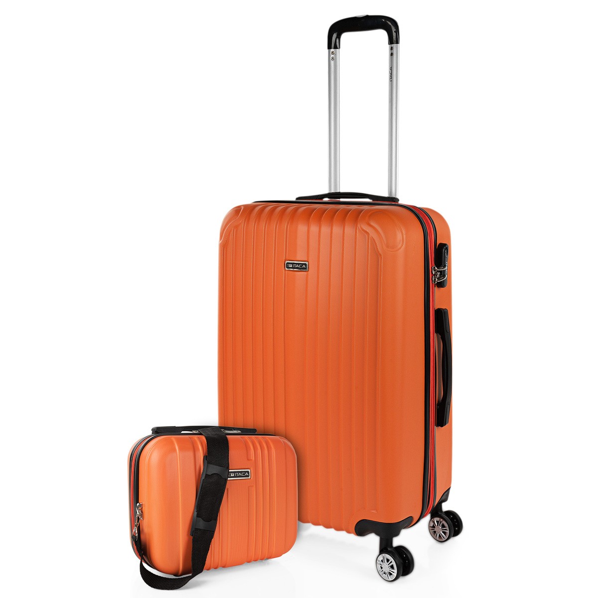 Conjunto de mala de carrinho médio e caixa de beleza ABS, marca ITACA. Todos os produtos ITACA são referência de qualidade, segurança e confiança. A ITACA é uma marca com muita experiência em design e fabricação de produtos de viagem. Um produto ITACA será seu fiel companheiro de viagem. Este 2 pcs definir é a combinação perfeita para viagens longas. As malas ITACA são projetadas para proporcionar o máximo de conforto em suas viagens. Principais características Dimensões: Média  Total: 66x41x27 + 5 cm. Extensível 5 cm. Corpo: 59x39x27 + 5 cm Volume: 70 L Peso: 3,50 kg Caso de beleza Tamanho: 33x26x14 cm capacidade: 15 L Peso: 0,80 kg exterior Material: ABS antiscratch texturised. Cadeado de combinação, 3 dígitos. Controle deslizante duplo com furos para o cadeado. Alças retráteis superiores e laterais. Máximo conforto em qualquer posição. Alça telescópica com botão de bloqueio. 4 rodas giratórias 360°. Médio, expansível. Casca dura, leve e resistente. interior Forro impresso. Compartimento divisor com zíper. Bandas elásticas ajustáveis. Compartimentos diferentes. Muito completo.